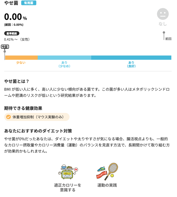 産後太りや肌荒れなどが気になっている場合は、「ダイエット(やせ菌、肥満菌)」や「美容」の項目も注目してみましょう。特に「美容」の項目は、女性ホルモンのサポートに直結する菌の結果が分かるため、美容面だけでなく、ホルモンバランスの変化から不調を整えるためのポイントも分かります。