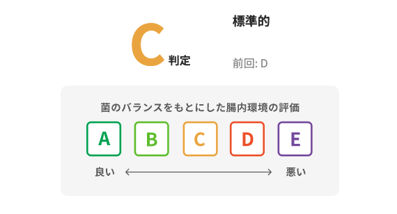 まずは総合評価である「腸内フローラ判定」で、現在の腸内環境が良いのか悪いのか、全体像を確認しましょう。ここがあなたの腸活のスタート地点になります。